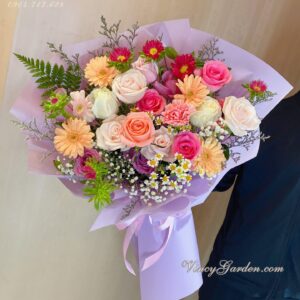 Bó hoa tone hồng tím xinh xắn đáng yêu này gửi gắm những tình cảm chân thành của người tặng sẽ chinh phục được bất kỳ cô gái nào!
