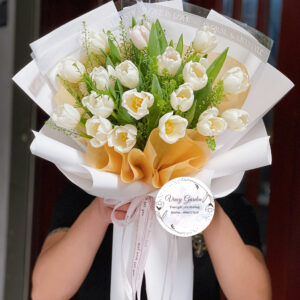 🌷 Bó hoa Tulip trắng tinh khôi có lẽ là món quà tuyệt vời cho người yêu trong những dịp quan trọng hay nhân một ngày đẹp trời nào đó. Với màu trắng tươi sáng tinh khôi, những bông hoa tulip tinh tế và thanh lịch sẽ tạo nên một cảm giác tươi mới và nữ tính.