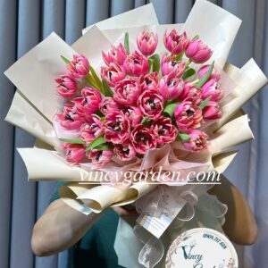 Bó hoa tulip hồng cánh kép là sự lựa chọn hoàn hảo, là món quà tinh tế và ấn tượng nhất dành tặng bạn gái, tặng người yêu hay tặng vợ nhân dịp 20/10, dịp sinh nhật hay một dịp quan trọng nào đó. Bó hoa được mix giữa 30 bông tulip hồng cánh kép như 30 viên kẹo ngọt ngào tạo nên một bó hoa xinh xắn chứa đựng một bầu trời tình yêu. 🌷💞
