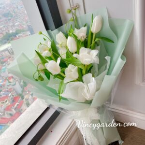Đặc biệt là hoa tulip trắng luôn được ưa chuộng nhất vì vẻ mong manh dịu dàng tinh khôi của những cánh hoa
