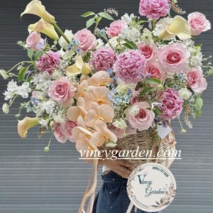 Hôm nay, chúng tôi rất vui mừng giới thiệu đến bạn giỏ hoa tươi xinh xắn này, một tuyệt tác của sự kết hợp hoàn hảo giữa màu sắc và hương thơm. Mỗi bông hoa trong giỏ đều được chọn lựa kỹ lưỡng, đảm bảo mang đến cho bạn cảm giác tươi mới và tràn đầy năng lượng.