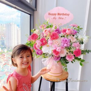 Hộp hoa sinh nhật màu hồng, hoa sinh nhật đẹp Cầu Giấy_ HH14