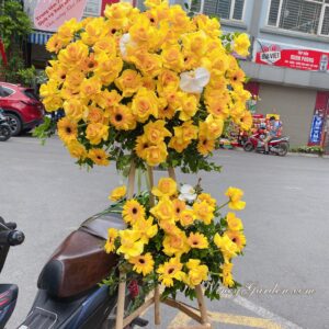 Kệ hoa 2 tầng khai trương chúc mừng màu vàng rực rỡ_HKT11