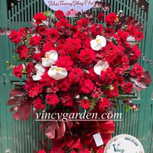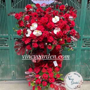 Kệ hoa chúc mừng khai trương đỏ rực rỡ tại quận Ba Đình Hà Nội_HKT15