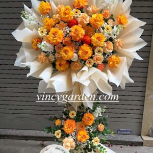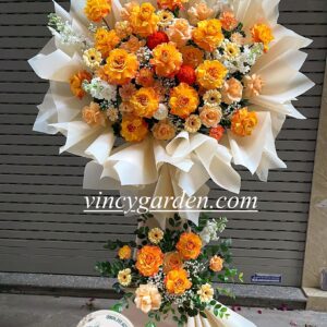 Mỗi bông hoa đều được chọn lựa kỹ lưỡng để mang lại niềm vui và sự khởi đầu mới đầy hứng khởi. Kệ hoa không chỉ là món quà ý nghĩa, mà còn là lời chúc tốt đẹp nhất dành cho những ai đang bắt đầu hành trình mới.