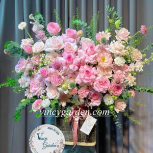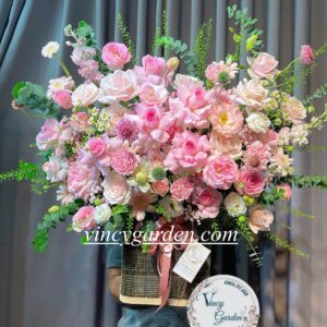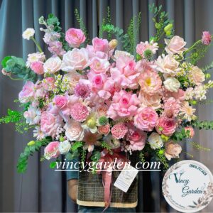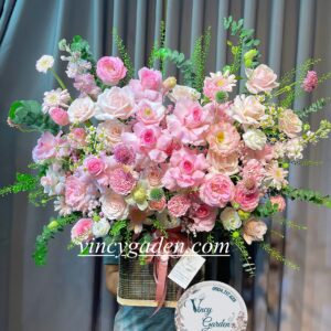 Màu hồng luôn mang đến cảm giác dịu dàng, ngọt ngào và lãng mạn. Một lẵng hoa màu hồng tươi đẹp là món quà hoàn hảo để gửi gắm những lời chúc tốt đẹp, thể hiện tình yêu thương và sự quan tâm đến người nhận. Với sự kết hợp của các loài hoa như hoa hồng, cẩm chướng, lily và hoa baby, lẵng hoa này sẽ làm bừng sáng bất kỳ không gian nào.