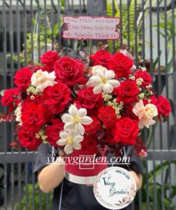Lẵng hoa hồng đỏ lãng mạn và tinh tế tặng vợ yêu tại Cầu Giấy_VC9