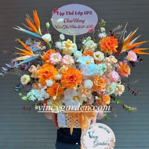 Nhân dịp khai trương hay dịp sinh nhật là một dịp đặc biệt và không có gì tuyệt vời hơn là gửi tặng một bình hoa tươi thắm màu cam rực rỡ. Sắc cam không chỉ tượng trưng cho sự may mắn và thành công mà còn mang lại cảm giác ấm áp và tươi mới. Lẵng hoa màu cam sẽ là món quà hoàn hảo để gửi gắm những lời chúc tốt đẹp và thành công đến người được nhận hoa.