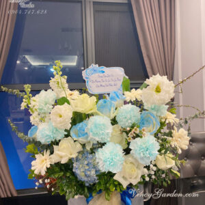 Lẵng hoa màu xanh trắng nhẹ nhàng bay bổng_LH21