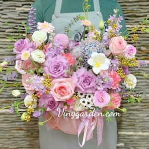 Lẵng hoa màu tím đẹp lãng mạn dành tặng cho các cô gái dịu dàng